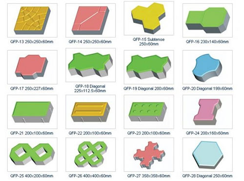 Gạch bê tông block được rung ép tần suất cao trong khuôn thép. Muốn thay đổi hình dáng, chỉ cần thay đổi khuôn. Do đó, mẫu mã rất đa dạng, có thể sản xuất hàng trăm chủng loại, kích cỡ, màu sắc khác nhau trên một dây chuyền sản xuất: gạch xây (đặc, rỗng), gạch lát vỉa hè, lề đường, kênh mương, sân bãi, nhà hàng, sân bay, quảng trường, kè bờ sông,....), gạch trang trí (gạch trồng cỏ sân vườn, biệt thự, gạch màu để ốp tường...).